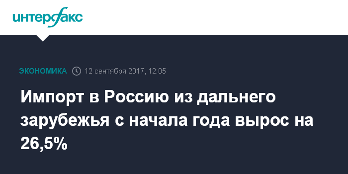 Импорт в Россию из дальнего зарубежья с начала года вырос на 26,5%