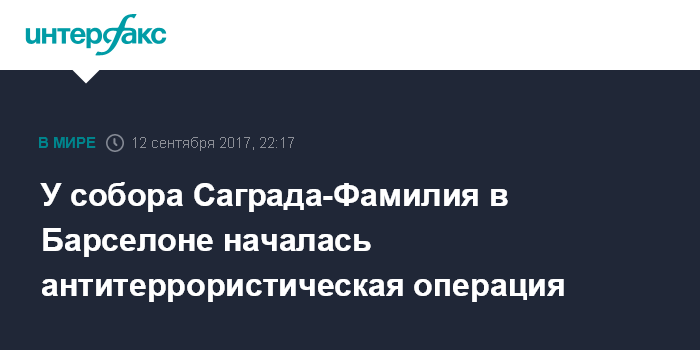 Москва. 12 сентября. INTERFAX.RU - Испанская полиция проводит антитеррористическую операцию возле собора Саграда-Фамилия в Барселоне, сообщает во вторник газета El Pais.