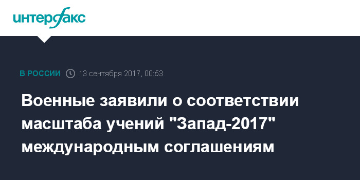 Военные заявили о соответствии масштаба учений "Запад-2017" международным соглашениям