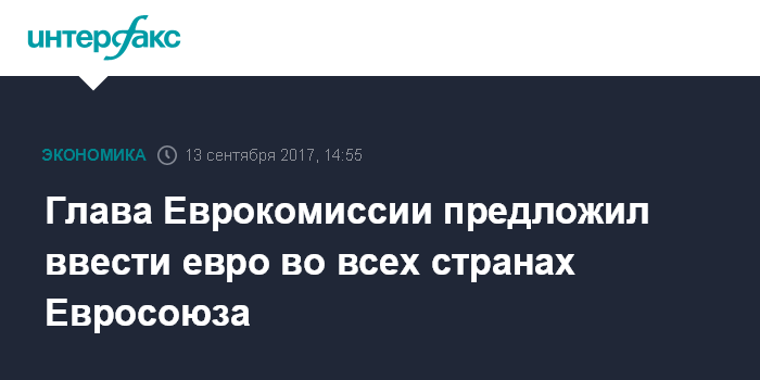 Москва. 13 сентября. INTERFAX.RU - Председатель Европейской комиссии Жан-Клод Юнкер предложил ввести евро на всей территории Европейского союза.
