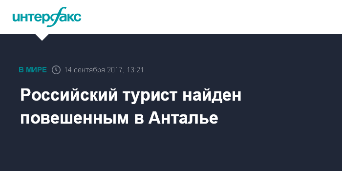 По его данным, 27-летний гражданин России был найден утром 12 сентября повешенным на одном из деревьев турецкого курортного города Манавгат провинции Анталья.