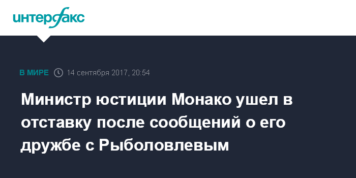 Министр юстиции Монако ушел в отставку после сообщений о его дружбе с Рыболовлевым
