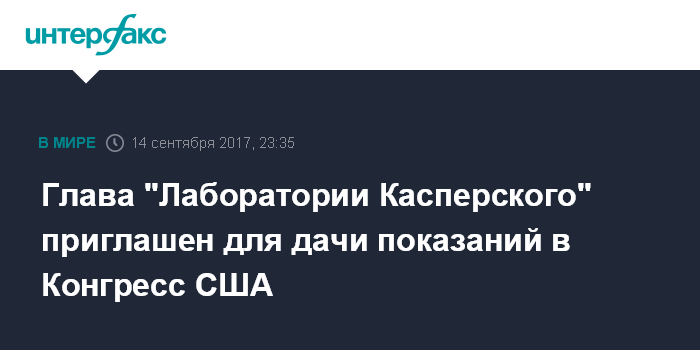 Как отмечается на сайте комитета, приглашения на слушания 27 сентября были отправлены пяти людям: Касперскому и экспертам из американского правительства и частного сектора в области кибер-технологий.