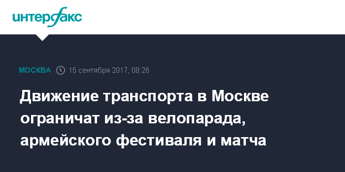 Движение транспорта в Москве ограничат из-за велопарада, армейского фестиваля и матча
