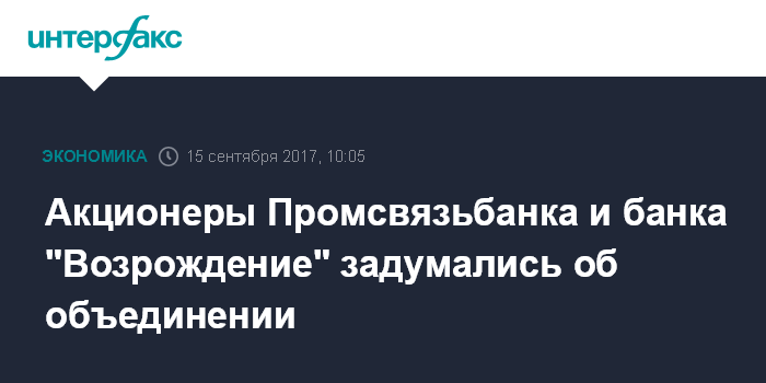 Акционеры Промсвязьбанка и банка "Возрождение" задумались об объединении