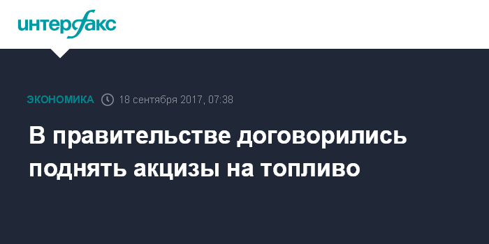 Москва. 18 сентября. INTERFAX.RU - На бюджетных совещаниях в правительстве принято решение дополнительно поднять акцизные сборы на топливо, сообщили "Ведомости".