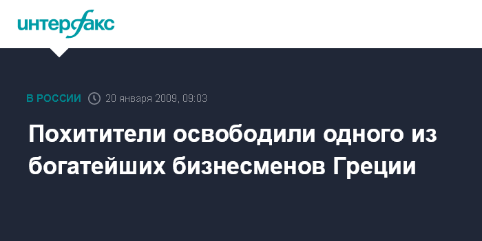 Похитители освободили одного из богатейших бизнесменов Греции