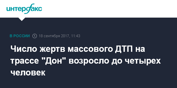 Ранее сообщалось, что в результате аварии с участием шести автомобилей на трассе "Дон" на Кубани в ночь на понедельник три человека погибли, еще пятеро получили травмы и были госпитализированы.