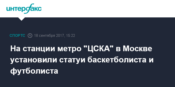 Москва. 18 сентября. INTERFAX.RU - На строящейся станции московского метро "ЦСКА" установлены бронзовые статуи футболиста и баскетболиста, написал мэр Москвы Сергей Собянин в твиттере в понедельник.