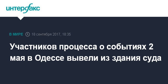 Москва. 18 сентября. INTERFAX.RU - Сотрудники правоохранительных органов смогли вывезти освобожденных судом фигурантов дела о событиях 2 мая 2014 года в Одессе, их родственников и адвокатов, которые после оглашения оправдательного приговора оставались в здании Ильичевского городского суда (Черноморск, Одесская обл.).