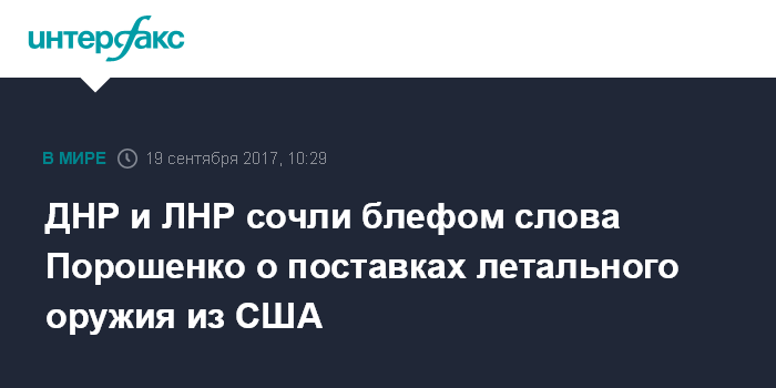 Москва. 19 сентября. INTERFAX.RU - В Донецке и Луганске посчитали блефом заявление президента Украины Петра Порошенко о якобы выделении Киеву масштабной оборонной помощи от США, включая летальные вооружения.