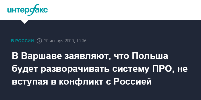 Москва. 20 января. INTERFAX.RU - Польша хотела бы избежать конфликтов с Россией при развертывании на своей территории элементов американской системы противоракетной обороны (ПРО).