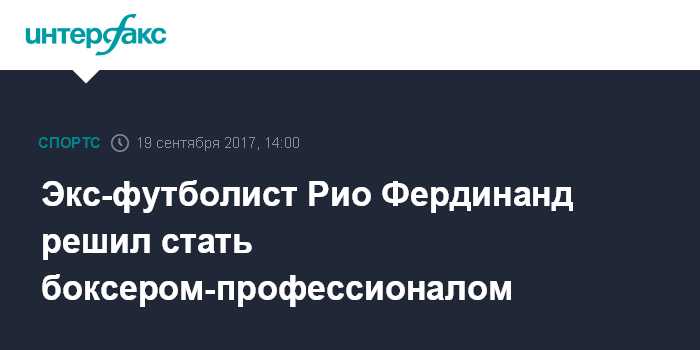 Москва. 19 сентября. INTERFAX.RU - Бывший центральный защитник сборной Англии по футболу и "Манчестер Юнайтед" Рио Фердинанд объявил о решении стать боксером-профессионалом, сообщает Guardian.