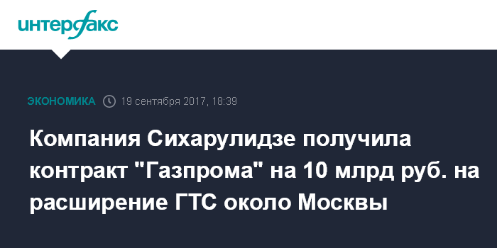 Компания Сихарулидзе получила контракт "Газпрома" на 10 млрд руб. на расширение ГТС около Москвы