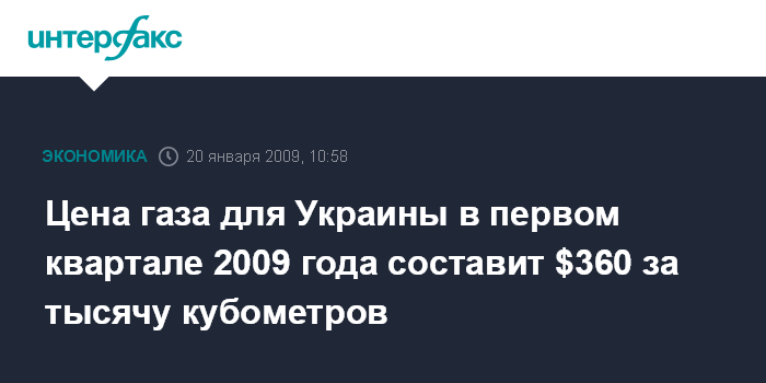Москва. 20 января. INTERFAX.RU - Поставки газа на Украину будут осуществляться по цене 360 долларов за тысячу кубометров, сообщил глава "Газпрома" Алексей Миллер на встрече с президентом РФ Дмитрием Медведевым.