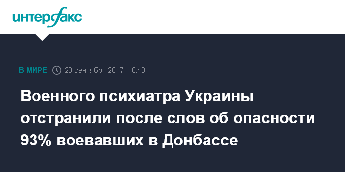 Военного психиатра Украины отстранили после слов об опасности 93% воевавших в Донбассе