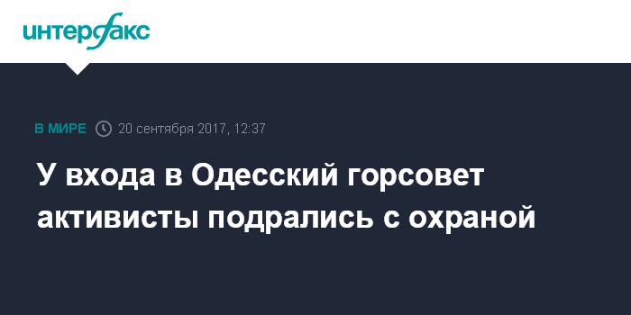 Москва. 20 сентября. INTERFAX.RU - Потасовка возникла у входа в здание Одесского горсовета между активистами, которые пытаются войти в мэрию, и представителями муниципальной охраны.
