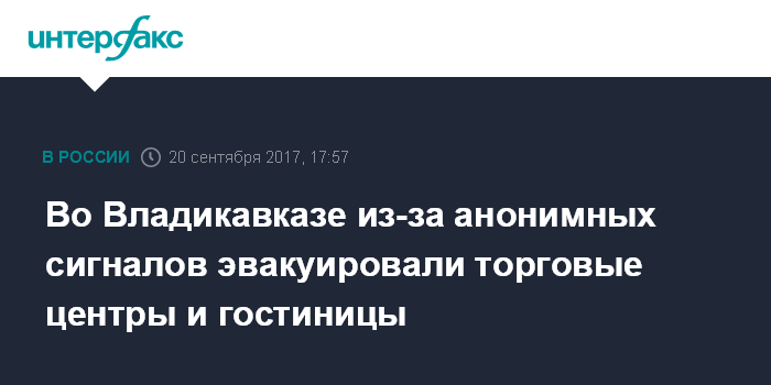 Москва. 20 сентября. INTERFAX.RU - Правоохранительные органы Владикавказа проверяют информацию о якобы заложенных взрывных устройствах на шести социальных объектах города.