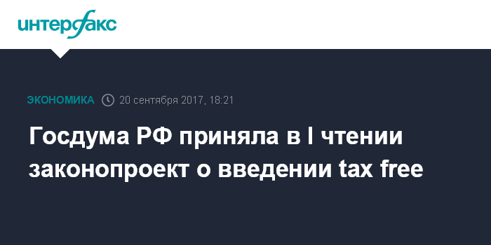Москва. 20 сентября. INTERFAX.RU - Госдума РФ на заседании в среду приняла в первом чтении законопроект, который наделяет иностранных граждан правом на возврат НДС по покупкам, совершенным на территории России (tax free).