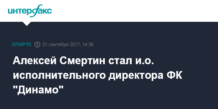 Москва. 21 сентября. INTERFAX.RU - Экс-капитан сборной России по футболу, член исполкома Российского футбольного союза (РФС) Алексей Смертин назначен в качестве исполняющего обязанности исполнительного директора московского ФК "Динамо", сообщает "Чемпионат".