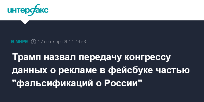 Трамп назвал передачу конгрессу данных о рекламе в фейсбуке частью "фальсификаций о России"