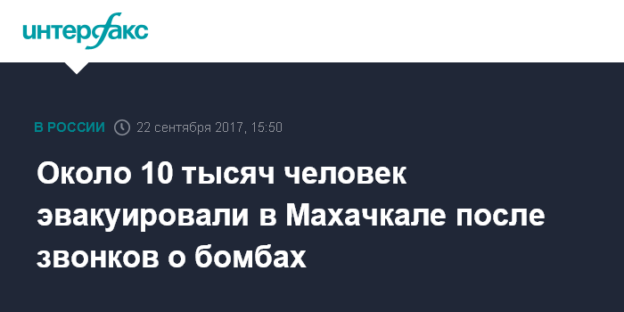 "По предварительным данным, было эвакуировано порядка 10 тысяч человек из ректората Дагестанского государственного университета, торгово-офисных центров "Гранд-плаза", "Седьмой континент", "Киргу", "Телли", из правительства республики. Также были эвакуированы несколько школ", - сказал собеседник агентства.