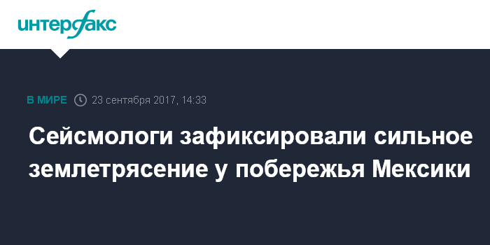 Москва. 23 сентября. INTERFAX.RU - Землетрясение магнитудой 5,8 произошло недалеко от берегов Мексики, сообщили в субботу в Геологическом центре США.