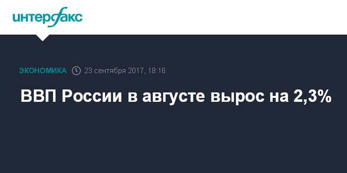 Москва. 23 сентября. INTERFAX.RU - Рост ВВП в августе составил 2,3%, сообщил глава Минэкономразвития Максим Орешкин.