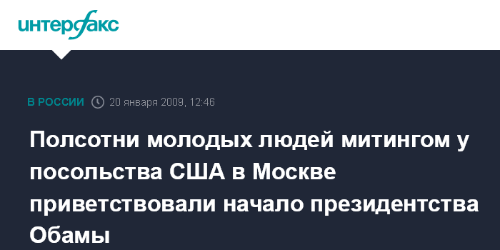 Полсотни молодых людей митингом у посольства США в Москве приветствовали начало президентства Обамы