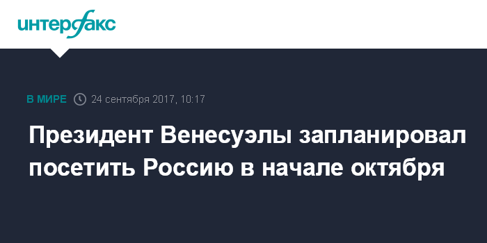 "Президент Венесуэлы Николас Мадуро может нанести визит в Россию в первых числах октября", - сообщил "Интерфаксу" осведомленный источник в штаб-квартире ООН в Нью-Йорке.