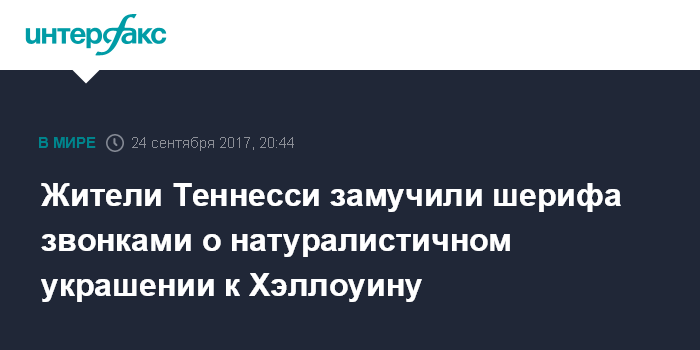 Москва. 24 сентября. INTERFAX.RU - Шериф округа Грин в штате Теннесси попросил жителей не звонить больше в его офис с сообщениями о том, что в одном из домов лежит труп.