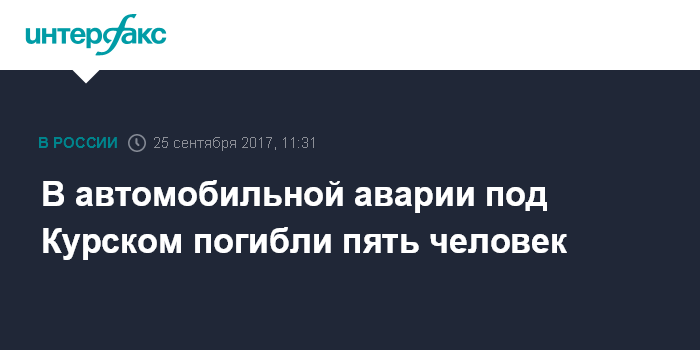 Москва. 25 сентября. INTERFAX.RU - Два легковых автомобиля столкнулись в Горшеченском районе Курской области в ночь на понедельник, пять человек погибли, сообщили "Интерфаксу" в пресс-службе главного управления МВД по региону.