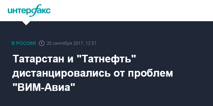 Москва. 25 сентября. INTERFAX.RU - Татарстан не имеет отношения к обязательствам авиакомпании "ВИМ-Авиа" (зарегистрирована на территории республики), сообщил "Интерфаксу" руководитель пресс-службы президента Татарстана Эдуард Хайруллин.