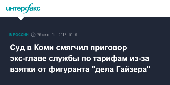 Суд в Коми смягчил приговор экс-главе службы по тарифам из-за взятки от фигуранта "дела Гайзера"