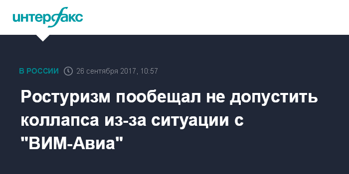 Москва. 26 сентября. INTERFAX.RU - Возврат туристов, отправленных за рубеж на рейсах авиакомпании "ВИМ-Авиа", будет осуществляться не за счет средств туроператорского сообщества, коллапса на рынке не будет, заявил во вторник "Интерфаксу" глава Ростуризма Олег Сафонов.