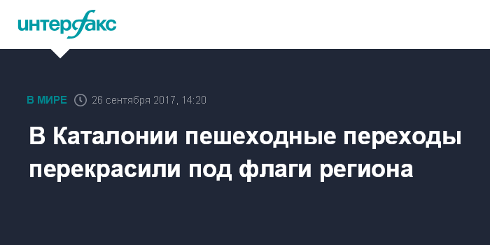 Москва. 26 сентября. INTERFAX.RU - К "зебрам" в нескольких городах Каталонии в ночь на вторник дорисовали треугольник со звездой - таким образом они превратились в стилизованные изображения каталонского флага, пишет газета El Confidencial.