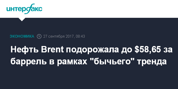 Нефть Brent подорожала до $58,65 за баррель в рамках "бычьего" тренда