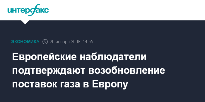 Европейские наблюдатели подтверждают возобновление поставок газа в Европу