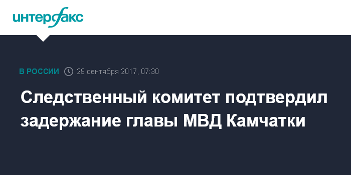Следственный комитет подтвердил задержание главы МВД Камчатки