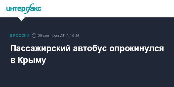 Москва. 29 сентября. INTERFAX.RU - Пассажирский автобус опрокинулся в пятницу в районе Керчи на востоке Крымского полуострова, предварительно, пострадали шесть человек, сообщил "Интерфаксу" руководитель пресс-службы МВД по республике Ольга Кондрашова.