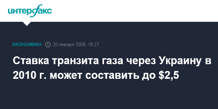 Ставка транзита газа через Украину в 2010 г. может составить до $2,5