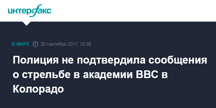 Москва. 30 сентября. INTERFAX.RU - Стражи порядка не обнаружили свидетельств стрельбы в академии ВВС США в штате Колорадо, сообщает в субботу агентство Associated Press.