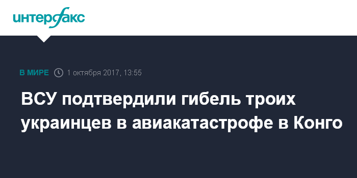 Москва. 1 октября. INTERFAX.RU - В Вооруженных силах Украины подтвердили телеканалу "112.Украина" информацию о том, что в Демократической республике Конго во время падения военного самолета погибли трое граждан Украины.