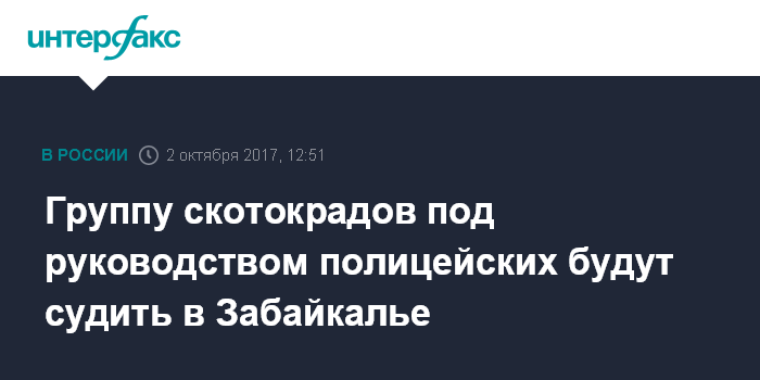 Москва. 2 октября. INTERFAX.RU - В Забайкальском крае завершено расследование уголовного дела в отношении 36 местных жителей, в том числе четырех бывших полицейских, которым инкриминируют серию краж домашнего скота, сообщает пресс-служба регионального управления СКР.