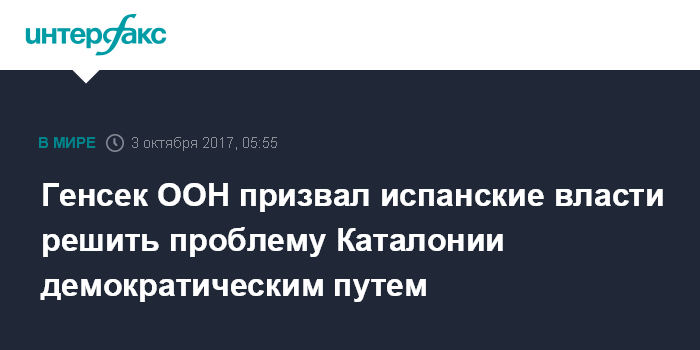 Он "выразил надежу, что демократические институты Испании найдут пути решения проблемы", цитируют СМИ заявление генсека.