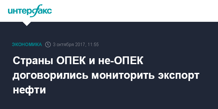 Москва. 3 октября. INTERFAX.RU - Страны ОПЕК и не-ОПЕК договорились мониторить не только добычу, но и экспорт, сообщил журналистам глава Минэнерго России Александр Новак.