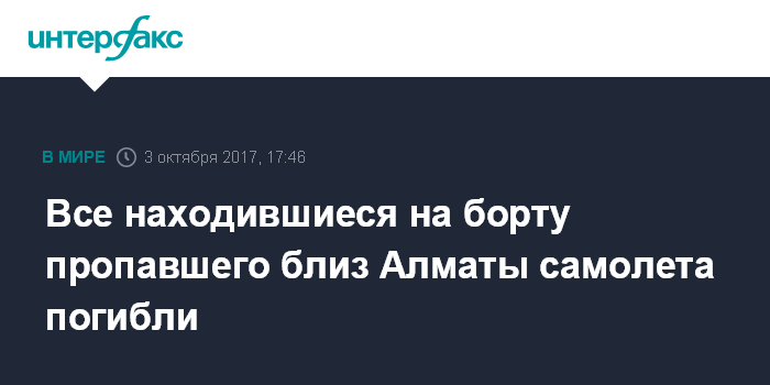 Все находившиеся на борту пропавшего близ Алматы самолета погибли