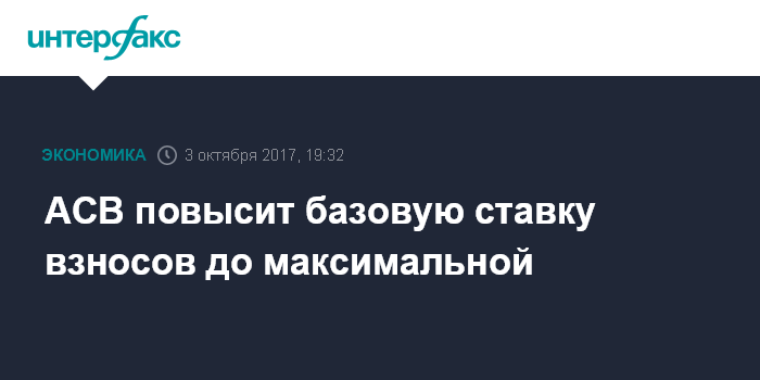 Москва. 3 октября. INTERFAX.RU - Совет директоров Агентства по страхованию вкладов (АСВ) принял решение увеличить базовую ставку взносов в фонд страхования вкладов до 0,15% с нынешних 0,12% расчетной базы (среднего остатка вкладов за квартал), говорится в сообщении АСВ.
