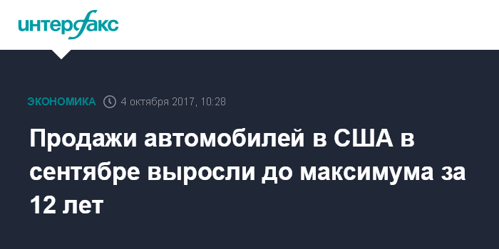 Продажи автомобилей в США в сентябре выросли до максимума за 12 лет