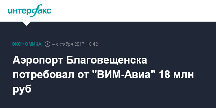Аэропорт Благовещенска потребовал от "ВИМ-Авиа" 18 млн руб